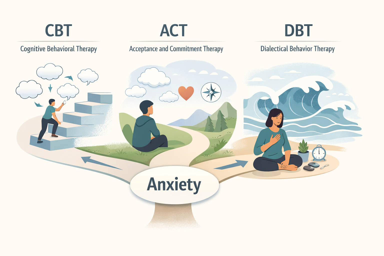 The Difference Between CBT, ACT, and DBT for Anxiety and How Clinicians Choose